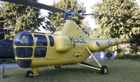 2019-2023年の間に子供用展示館の上部にあるヘリ展示場に移設された。ここのヘリコプター展示エリアにある全ての展示機について言えることだが、季節によるが、15時ごろ以降には樹木や建物の影が機体にかかる。午後に現地に到着したら早めに撮影しておこう。
