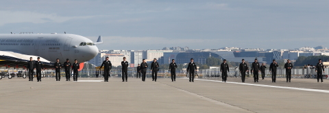 演技を終えた機体は2機2機2機2機の隊形で戻って来る。エプロンの停止場所に戻ってきた機体は一斉にエンジンカット。だが、直ぐにキャノピーは開かず、なにやらゴソゴソやっている。この時、太極旗もしくは当該イベント専用の旗をキャノピの内枠に括り付けているのだな。これが終わると、ようやくキャノピーオープン。降機後は列線中央までウォークバックして一列に並び、敬礼!